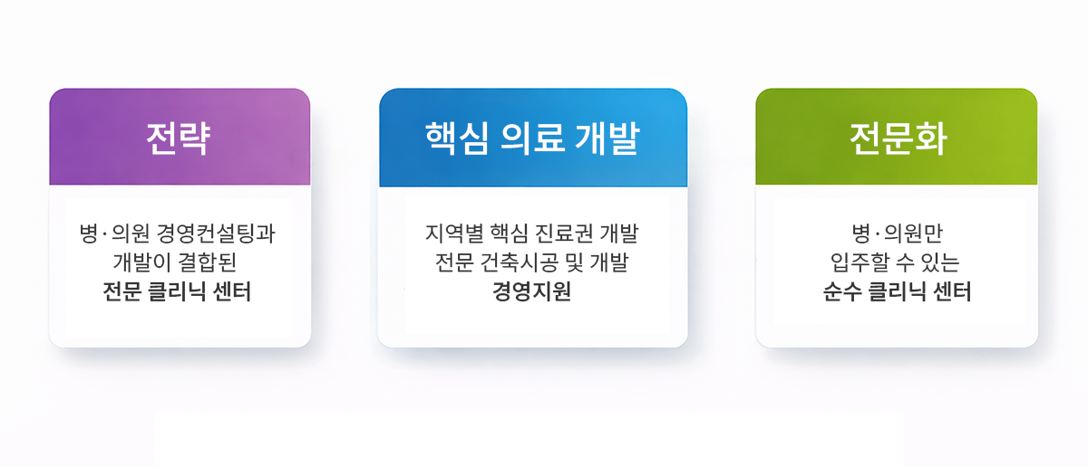 ㈜Taeshin은 개발부터 경영 컨설팅과 병원 관리에 이르는 전과정을