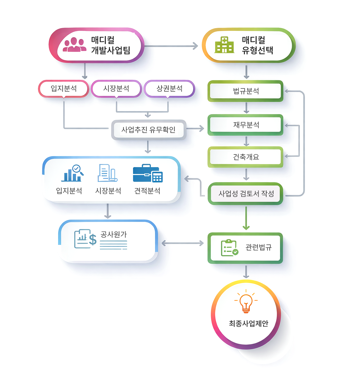 ㈜Taeshin은 개발부터 경영 컨설팅과 병원 관리에 이르는 전과정을